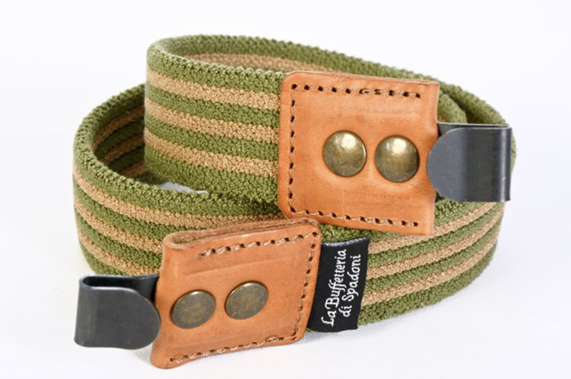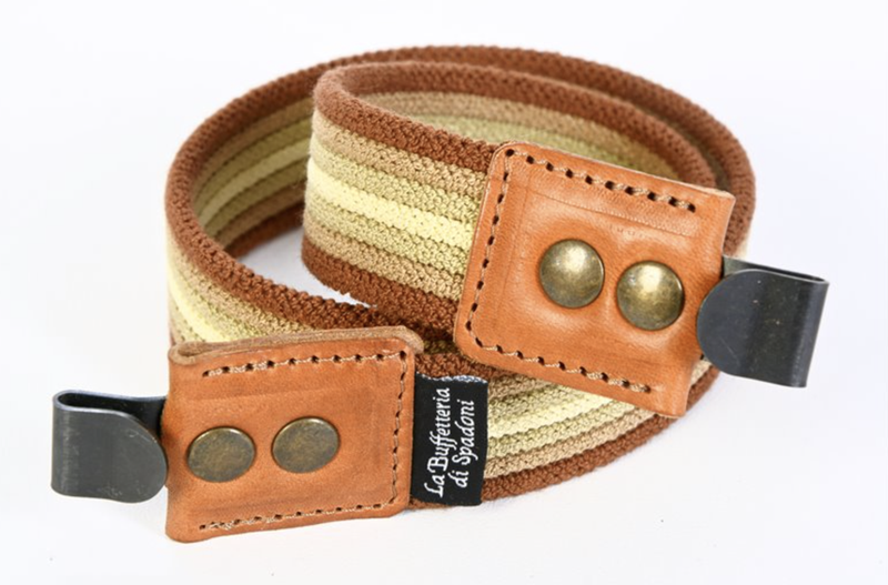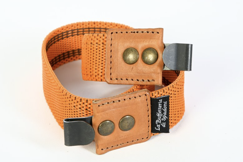 Cinghia elastica attacco rapido, attacchi in ferro zincato nero opaco fermato con due rivetti per una maggior tenuta, finiture in cuoio.